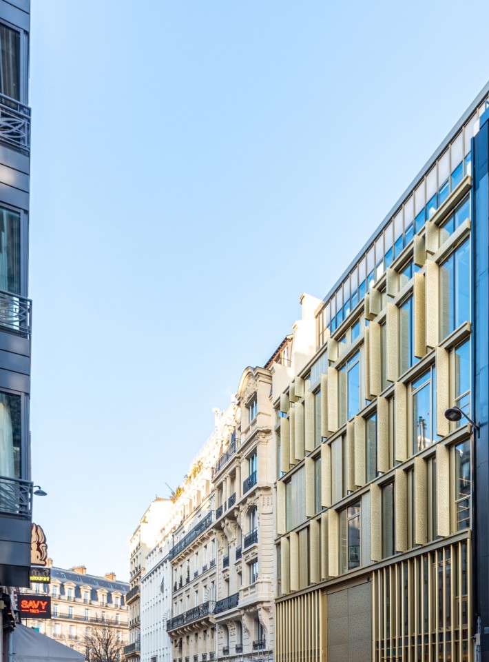 On the street, a new perforated brass facade will affirm real modernity and identity of the building complex while marking the link with the historic facade.