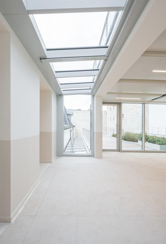 Le projet prévoit de mettre en valeur l’architecture du bâtiment par le végétal et par le travail des vides qui le structurent. Son objectif est d’améliorer le cadre de vie des futurs utilisateurs, tout en développant la place de la nature en ville et les nombreux avantages qu’elle apporte au milieu urbain (relais de biodiversité, îlots de fraicheur...). Pour ce faire, le projet envisage la création de nouvelle surfaces végétalisées avec une terrasse accessible au 3ème et 4ème étage ainsi qu'un patio au rez-de-chaussée donnant à voir une végétation variée et adaptée à l’ensoleillement. À ce jardin vertical étagé s'ajoute la création d’une extension contemporaine de 3 niveaux sur rez-de-chaussée en lieu et place d’un des bâtiments sur cour.